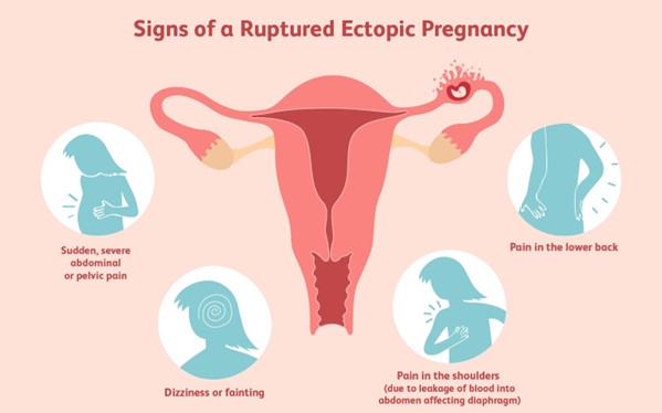The correct answer is choice D, Sharp pelvic pain. An ectopic pregnancy occurs when a fertilized egg implants outside of the uterus, most commonly in the fallopian tube. Sharp pelvic pain is a classic sign of an ectopic pregnancy, as the developing embryo can cause the tube to rupture or stretch, leading to pain. A scaphoid abdomen, elevated blood pressure, and bright red vaginal discharge are not typical manifestations of an ectopic pregnancy.