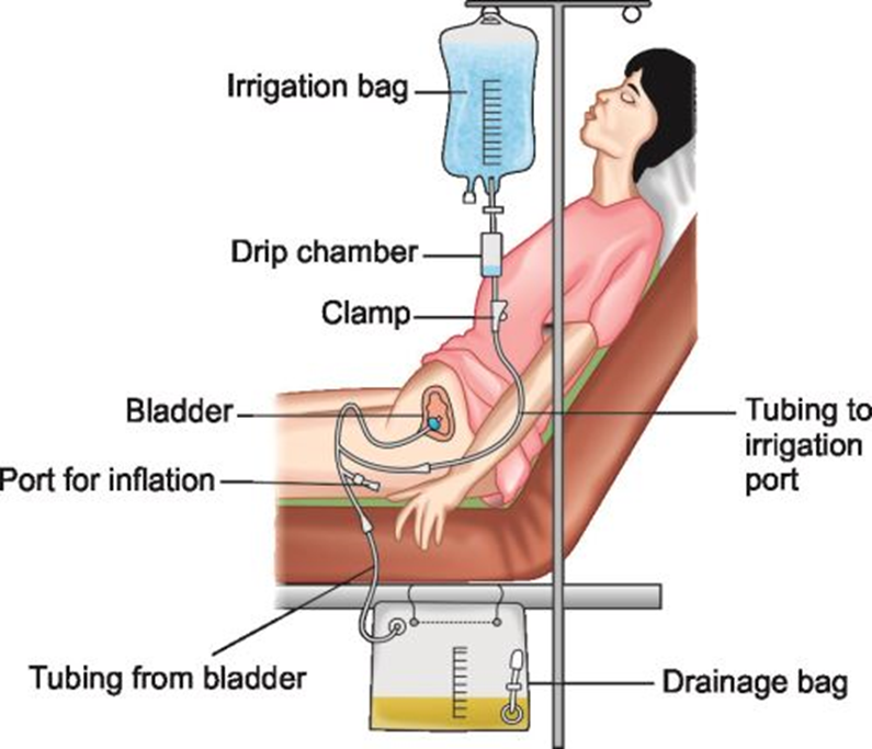 When calculating the fluid balance for a client undergoing continuous bladder irrigation (CBI), the irrigation solution must be deducted from the total urine output. This is because the irrigation fluid is not part of the client’s actual urine production but is an additional fluid introduced into the bladder to prevent or remove blood clots and ensure catheter patency. By deducting the irrigation solution from the total urine output, the nurse can accurately determine the client’s true urine output and fluid balance.