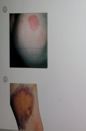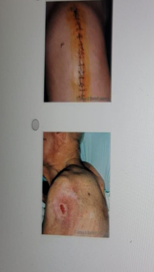 A nurse is performing skin assessments for a group of clients. Which of the following images indicates a wound that is healing by secondary intention?