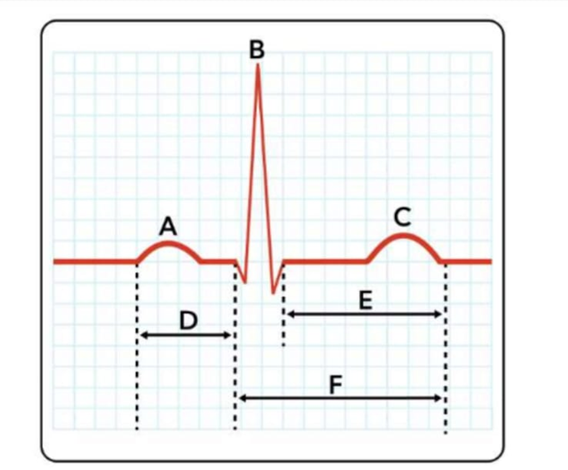 Which letter represents ventricular depolarization?