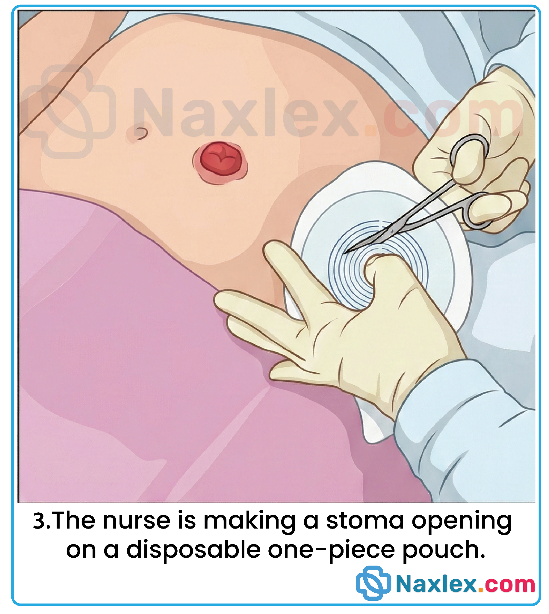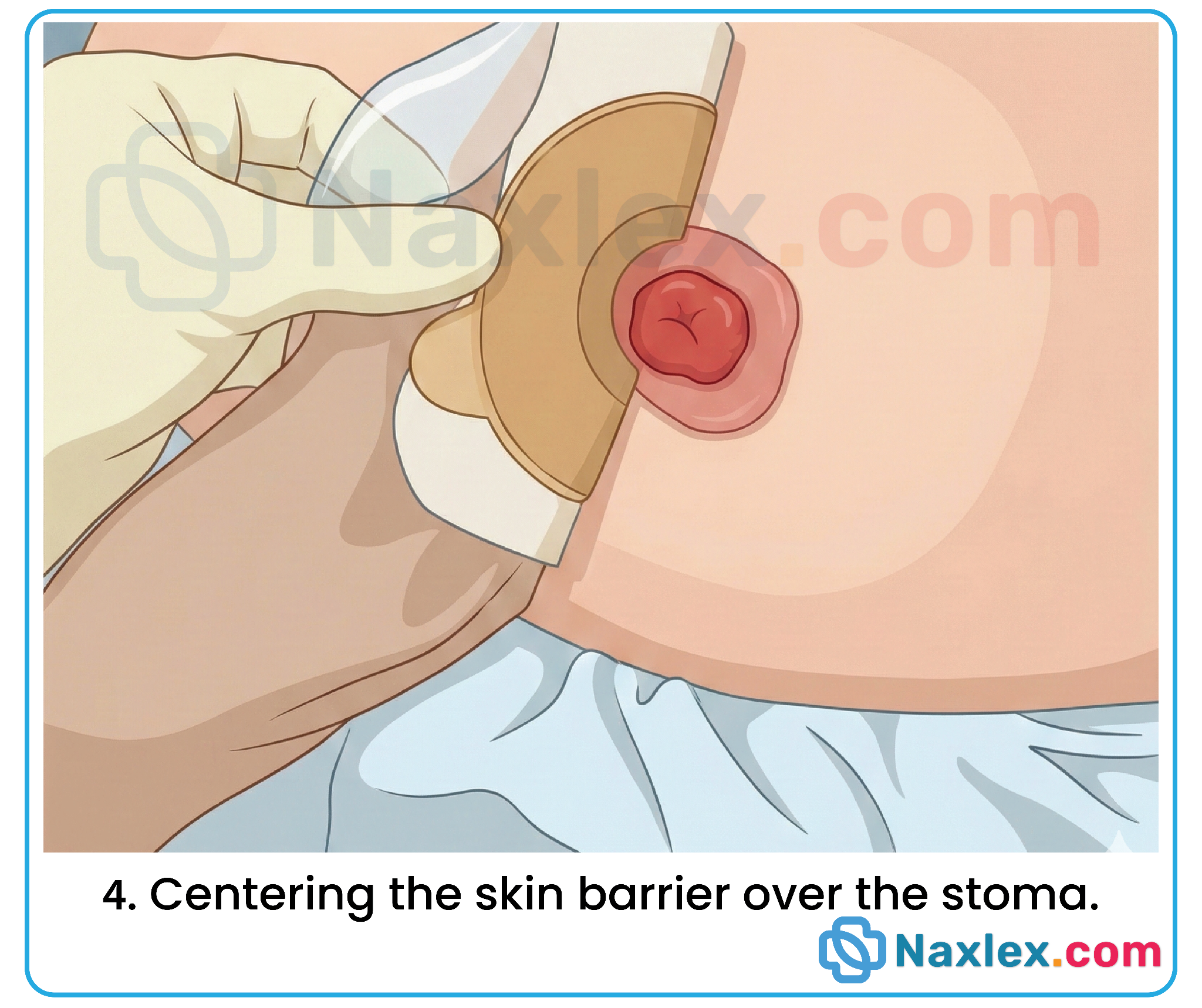 - Preparation: Place a gauze pad over the stoma to absorb seepage while the skin dries.