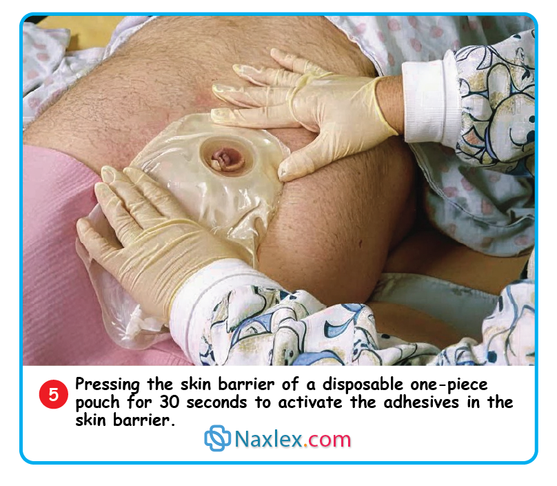 - Secure: One-piece: Center over the stoma and press for 30 seconds.