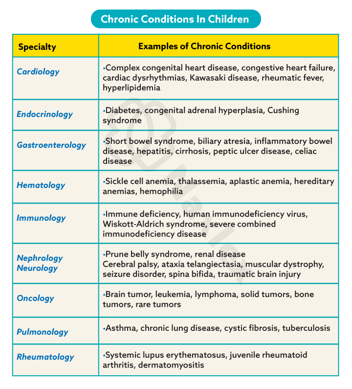 - For children with chronic illnesses or life-limiting conditions, nursing care is focused on providing unwavering support at the time of diagnosis, educating families about their child's disorder, and helping them promote normal development despite the challenges.