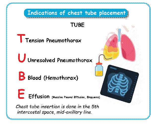 - Always verify chest tube placement and lung re-expansion with a chest x-ray after insertion.
