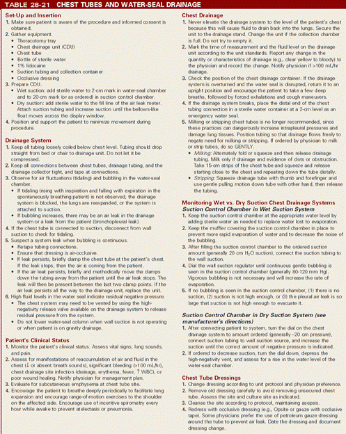 - Always keep oxygen, sterile water, enclosed hemostats, and an occlusive dressing at the bedside of a patient with a chest tube.