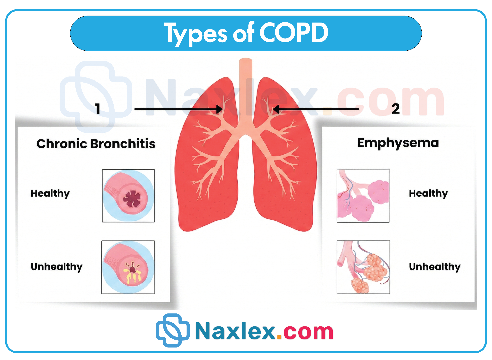- The two main types of COPD are chronic bronchitis and emphysema.