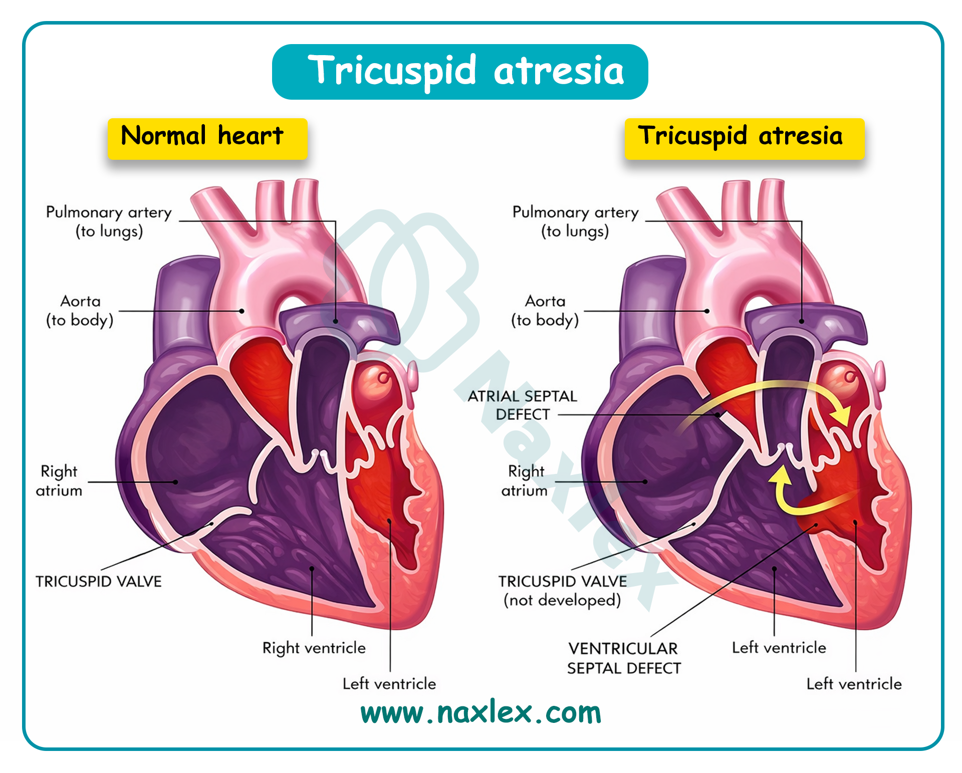- Tricuspid atresia is the complete agenesis (absence) or failure of the tricuspid valve to develop. This creates a solid tissue barrier between the right atrium and the right ventricle, preventing blood from flowing directly into the right-sided pumping chamber.