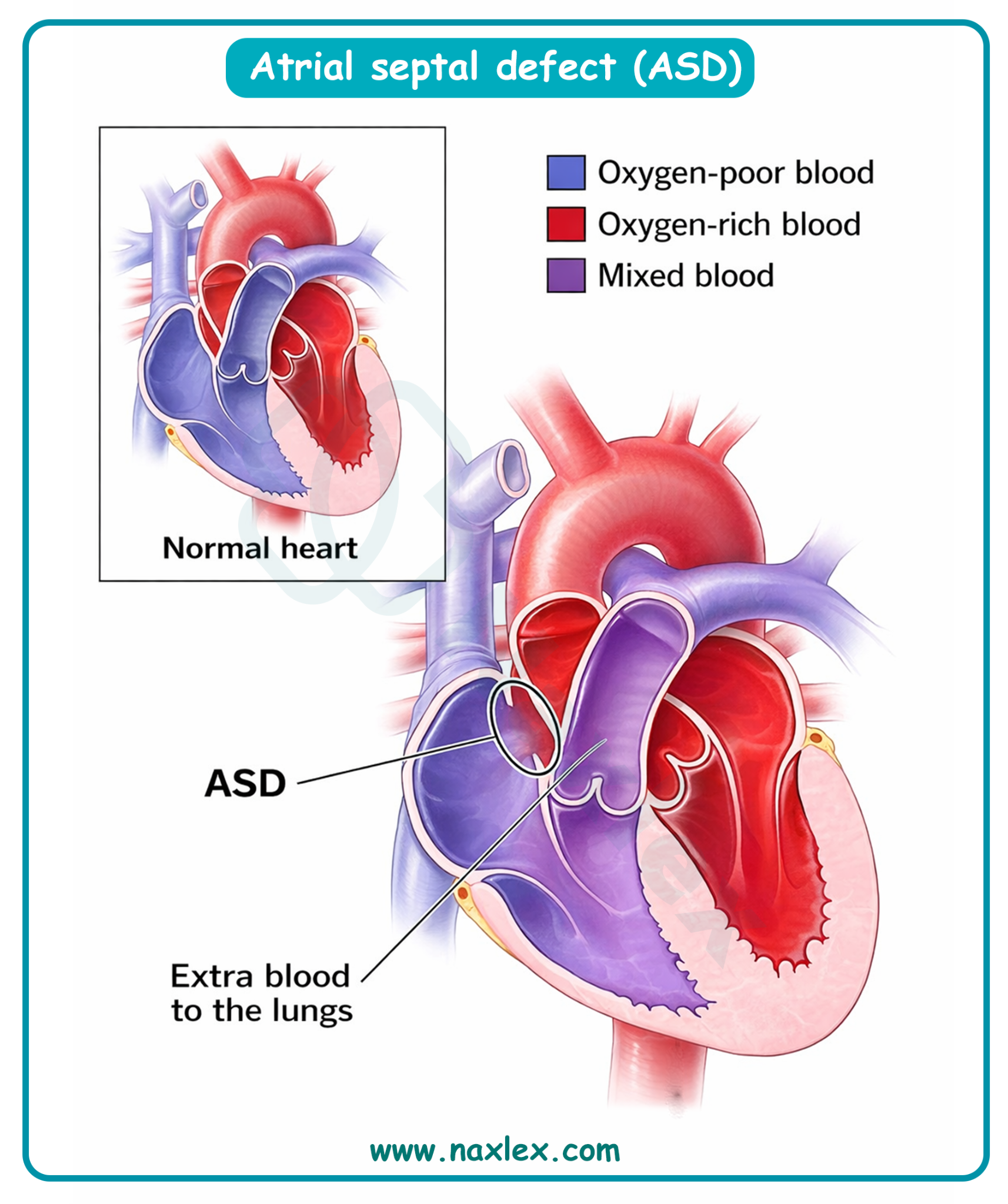- Categorize the defect first: Is it cyanotic (decreased flow) or acyanotic (increased flow). ASD is acyanotic, so flow to the lungs must be increased.