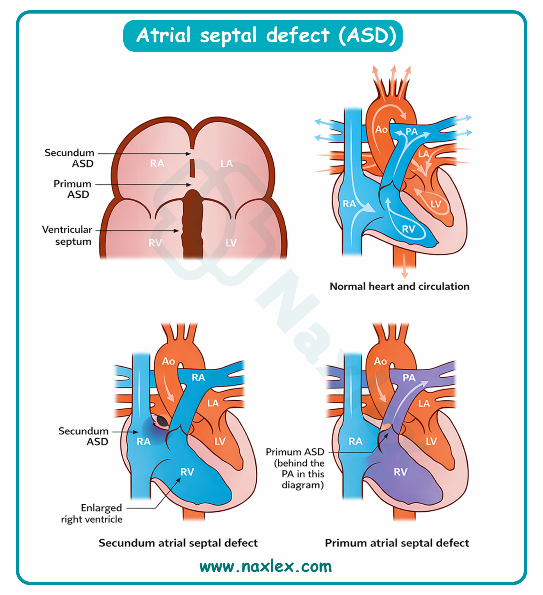 - Distinguish between pulmonary and systemic effects. ASD is primarily a pulmonary overcirculation disease, not a systemic low-pressure disease.