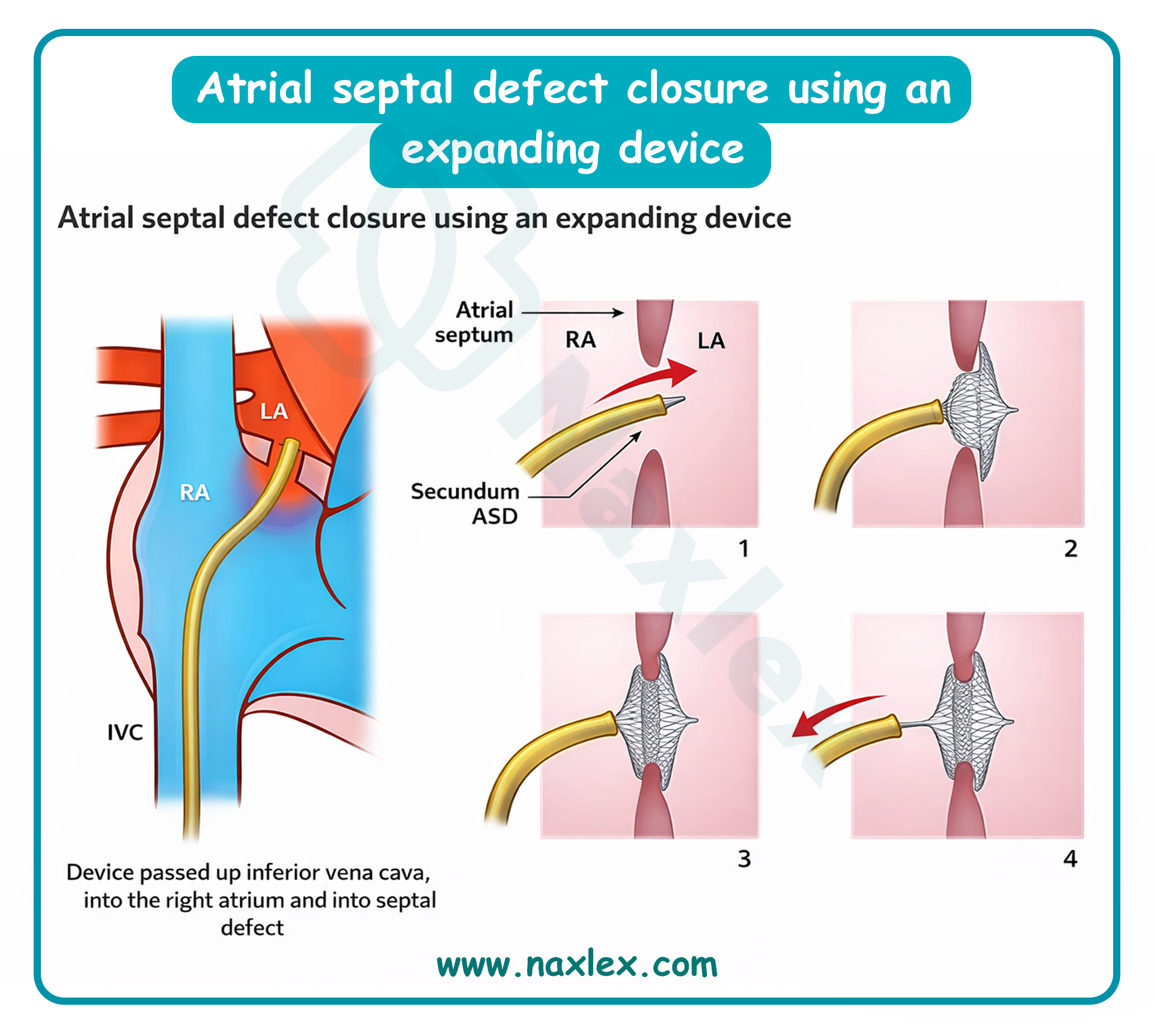 Atrial septal defect is a congenital cardiac lesion characterized by a persistent opening in the interatrial septum, allowing communication between the systemic and pulmonary circulations. This structural defect results in a left-to-right shunt, leading to chronic volume overload of the right heart chambers and pulmonary overcirculation. If left untreated, the increased pulmonary venous return and structural remodeling can predispose the patient to atrial dysrhythmias and progressive heart failure.