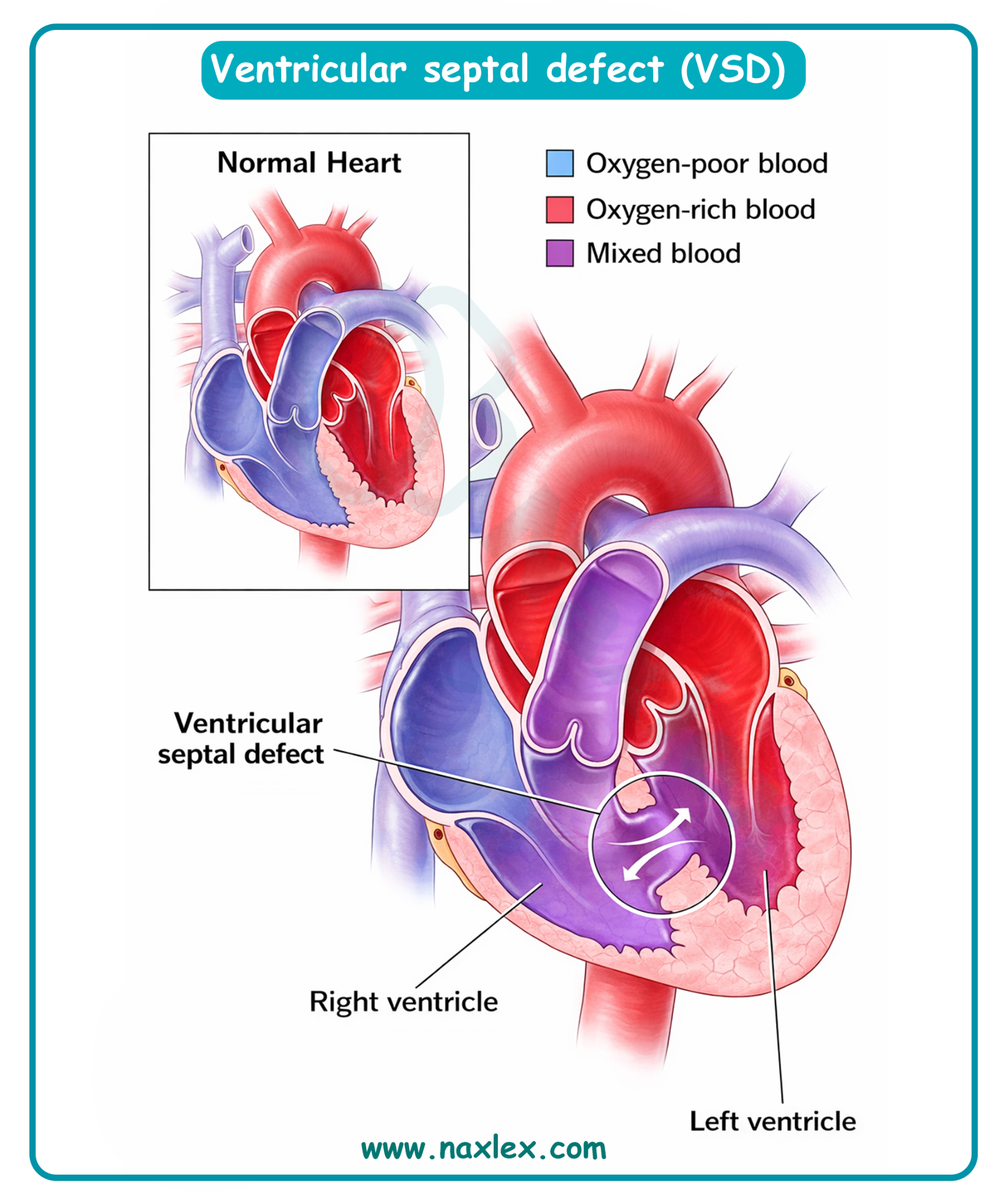 - Use the "path of least resistance" rule: Blood flows from the high-pressure left side to the lower-pressure right side, creating a volume load for the right side.