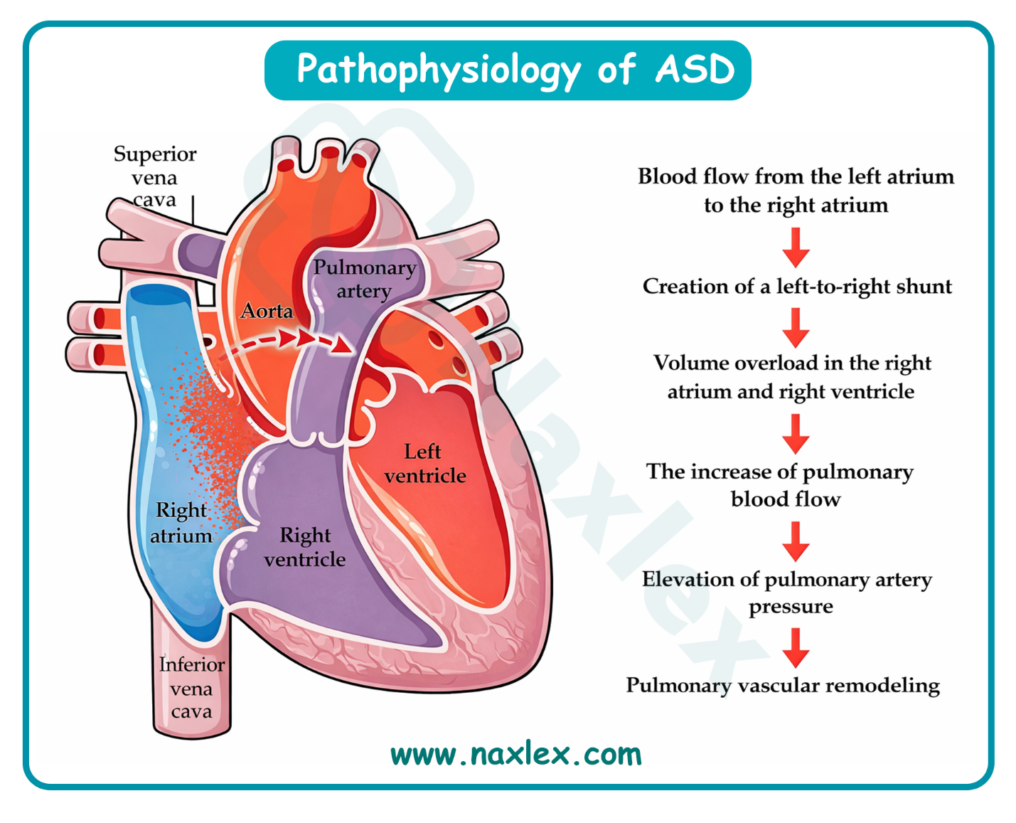 Atrial septal defect is a congenital cardiac anomaly where a deficiency in the interatrial septum creates a persistent communication between the atria. The resulting left-to-right shunt causes a chronic increase in pulmonary blood flow and volume overload of the right heart chambers. Over decades, this hemodynamic stress leads to irreversible structural changes in the pulmonary vasculature and cardiac remodeling, significantly increasing the risk of morbidity and mortality in adulthood.