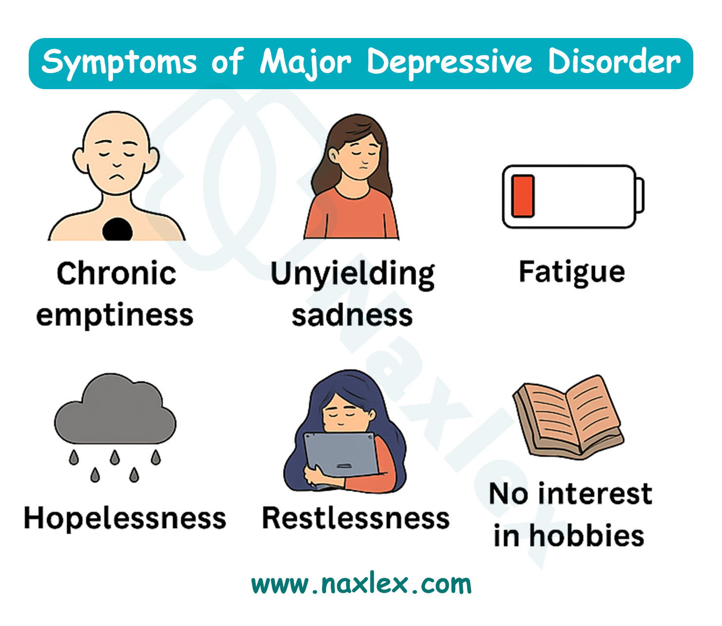 Major depressive disorder is a psychiatric condition characterized by persistent low mood and loss of interest, accompanied by cognitive and somatic symptoms. It must last at least two weeks and cause functional impairment.