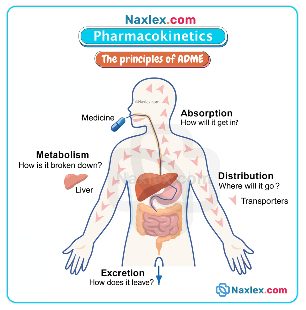 • Excretion: kidneys are the primary route for most drugs/metabolites; renal impairment necessitates dose adjustment. Urine pH can be manipulated to enhance elimination of certain drugs.