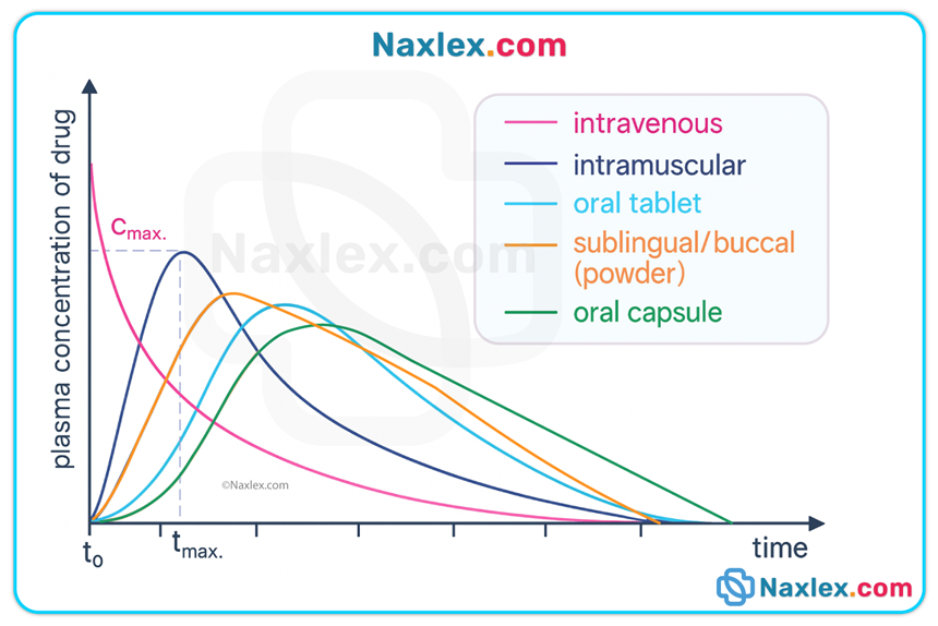 - IV administration provides 100% bioavailability by directly entering the bloodstream.