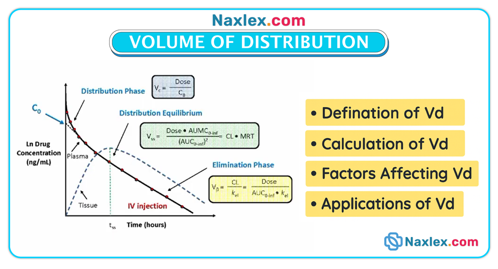 • Distribution: blood flow, tissue affinity, protein binding, and barriers (BBB, placenta) determine drug movement to site of action. Hypoalbuminemia increases free drug and toxicity risk. Volume of distribution influences half-life.