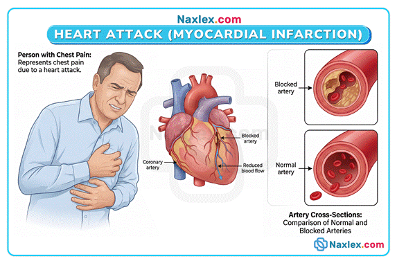 - Angina pectoris: Chest pain from myocardial ischemia due to imbalance of oxygen supply and demand.