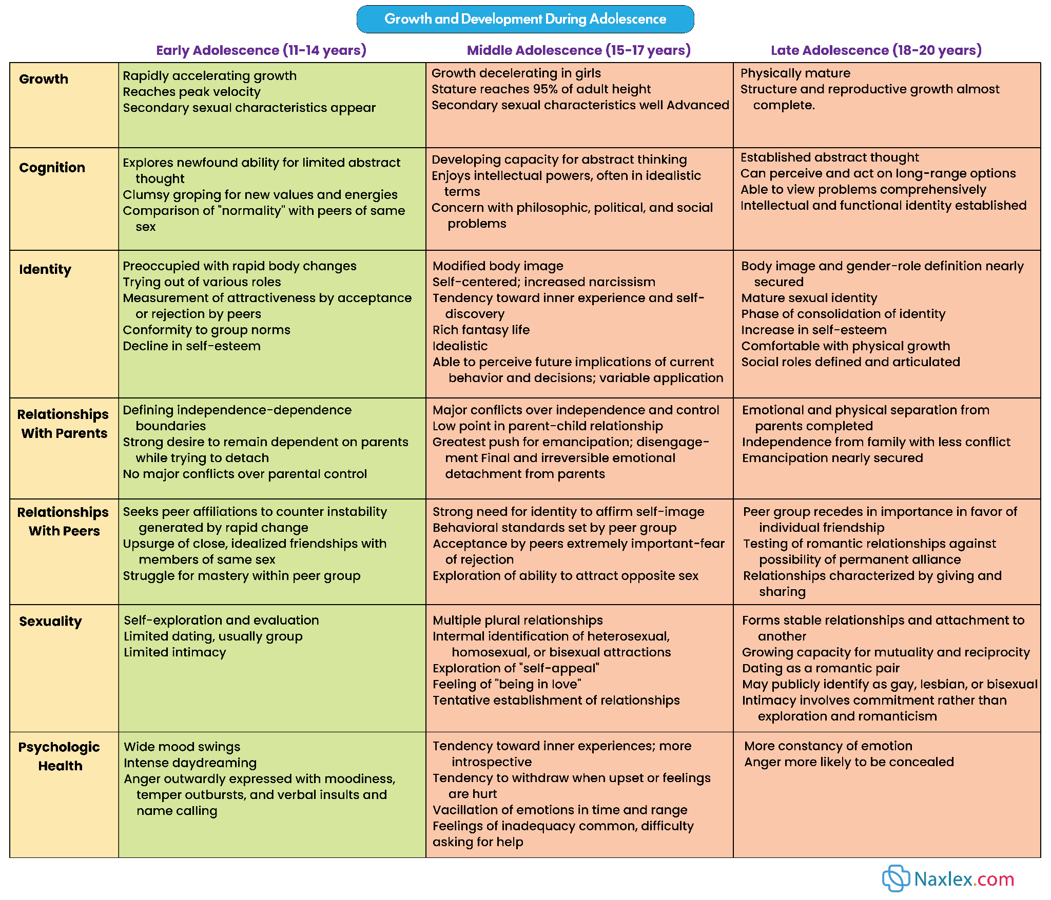 - By mastering the key concepts of pubertal development, psychosocial milestones, and cognitive changes, nurses can effectively promote healthy behaviors and prevent common health risks.