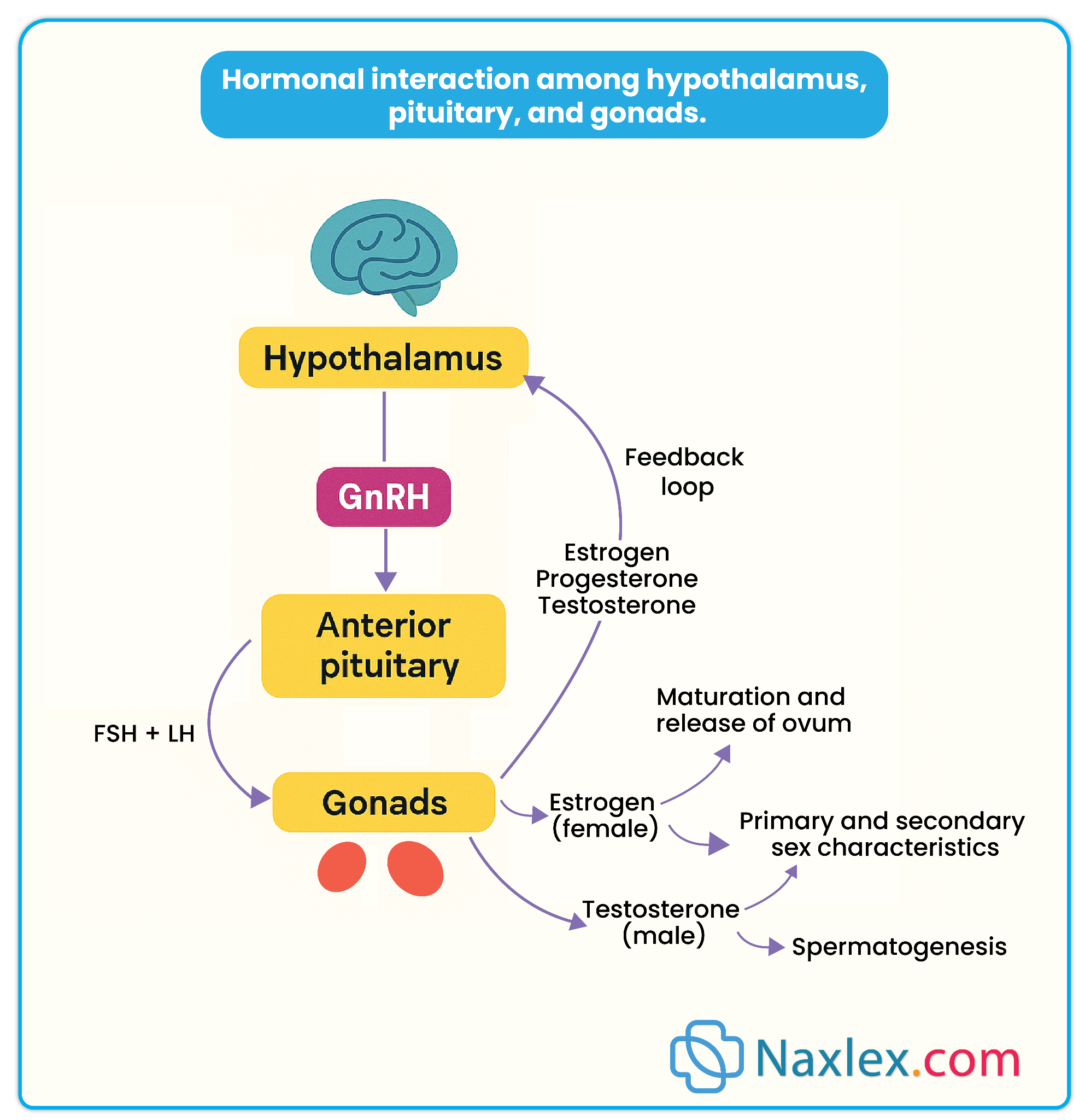 - Puberty is initiated by GnRH → FSH & LH → sex hormone production (estrogen/testosterone).