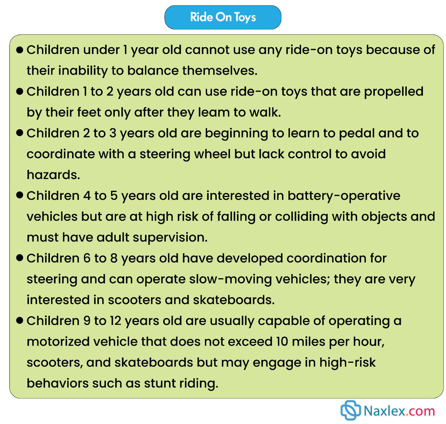 - School-aged children using these toys on streets and highways face an increased risk of collisions with objects or vehicles. Parents should carefully assess their child's skill level before allowing them to use any ride-on toy.