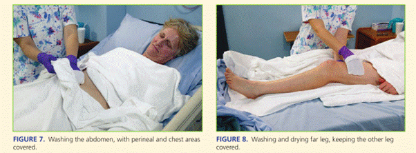 - Female: spread labia, wash from pubic area to the anal area.