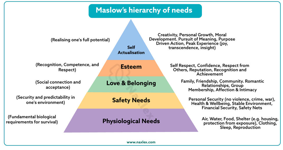 Maslow’s hierarchy of needs emphasizes that basic physiological requirements must be met before individuals can focus on safety, social, or higher-level psychological needs.