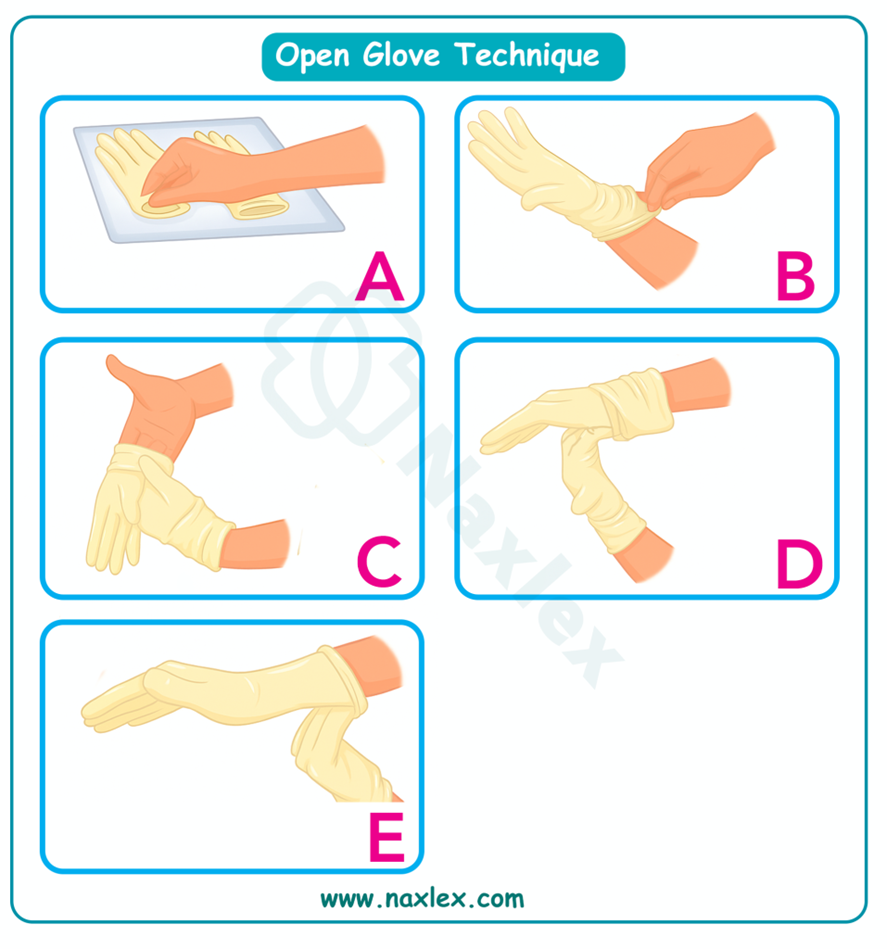 In the open glove technique, your hands slide all the way through the sleeves out beyond the cuffs of the gown (if worn).