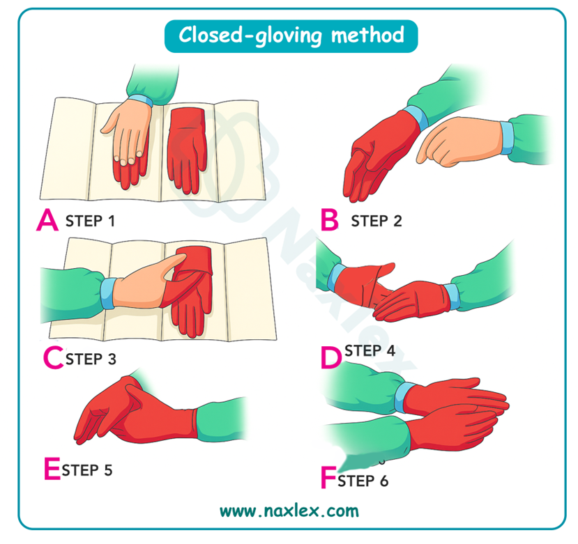 The closed-gloving method, performed after applying a sterile gown, is practiced in operating rooms and special procedure areas.