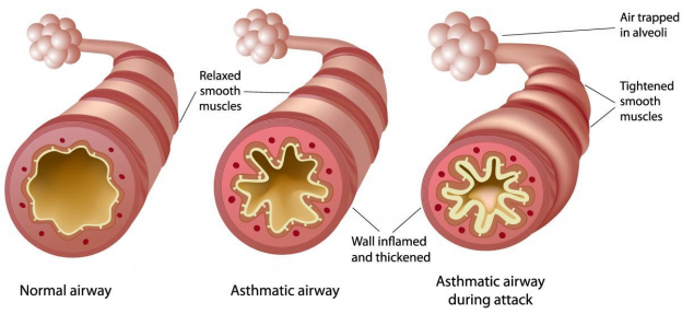 Asthma is a chronic inflammatory airway diseasecharacterized by bronchoconstriction, airway inflammation, and increased mucus production. During acute symptoms such as wheezing, coughing, or shortness of breath, the immediate priority is to relieve bronchospasmand improve airflow.