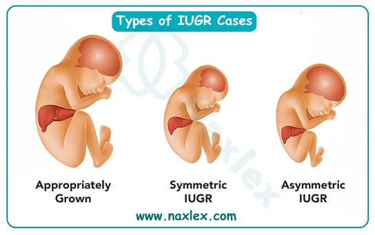 - Symmetrical IUGR (affecting all fetal parameters) suggests early insults, such as chromosomal abnormalities, while asymmetrical IUGR (sparing head growth) indicates late-onset issues, such as placental insufficiency.