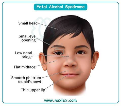2. Fetal alcohol spectrum disorder results from maternal alcohol consumption during pregnancy. It is characterized by growth restriction, facial anomalies, and neurobehavioral impairment, unrelated to thyroid hormone imbalance.