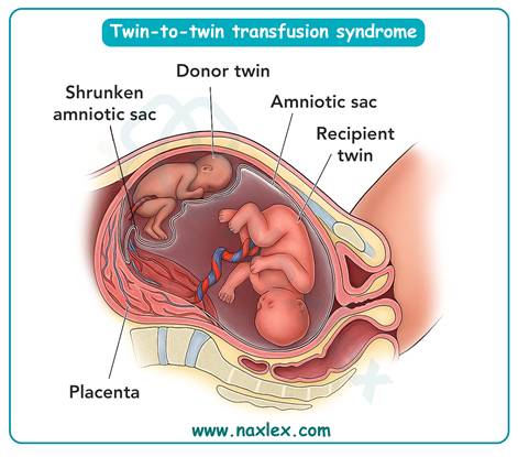 - Twin-to-twin transfusion syndrome (TTTS) may occur in monochorionic twins, leading to unequal blood flow and growth disparities.