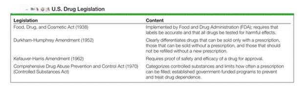 - Federal drug legislation regulates the production, prescription, distribution, and administration of drugs.