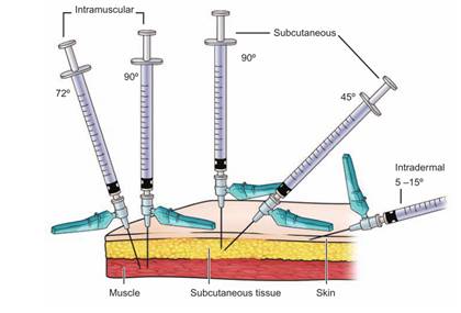 2. Insert the needle quickly into the subcutaneous tissue: A quick, decisive insertion minimizes pain and places the needle at the correct depth (45° or 90° depending on needle length and amount of subcutaneous tissue).