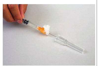 - Choose a syringe that comfortably holds the ordered volume (a 2-mL syringe is ideal for 0.75 mL).