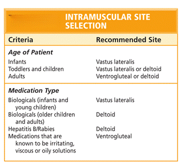 Selecting IM equipment requires matching syringe size, needle gauge, and needle length to the patient’s body habitus and the medication volume. In an older, emaciated client muscle mass is reduced.