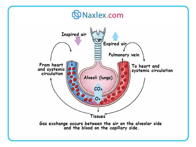 Alveolar ventilation is the process by which gas exchange occurs between the atmosphere and the pulmonary capillaries to maintain homeostatic blood gas levels. When a patient experiences thoracic trauma, pain-induced splinting leads to a reduction in tidal volume and respiratory frequency. This physiological state, known as hypoventilation, results in the retention of carbon dioxide and a subsequent decrease in arterial oxygen saturation, potentially leading to respiratory acidosis.