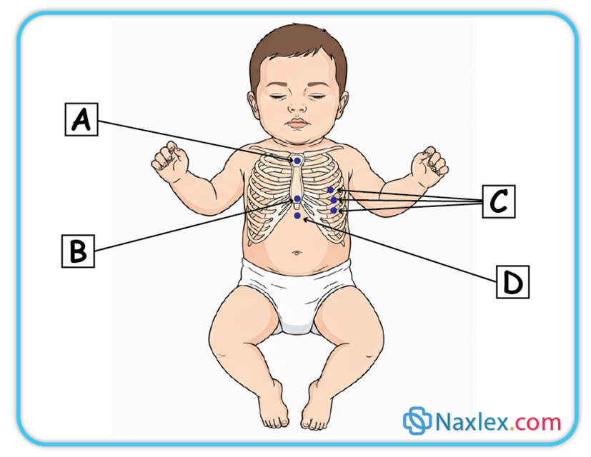 1. A: This represents suprasternal retractions, typically seen at the sternal notch with upper-airway obstruction (e.g., croup, laryngomalacia). Not “substernal.”