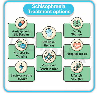 - Psychoeducation: For patient and family, enhances medication adherence and relapse prevention