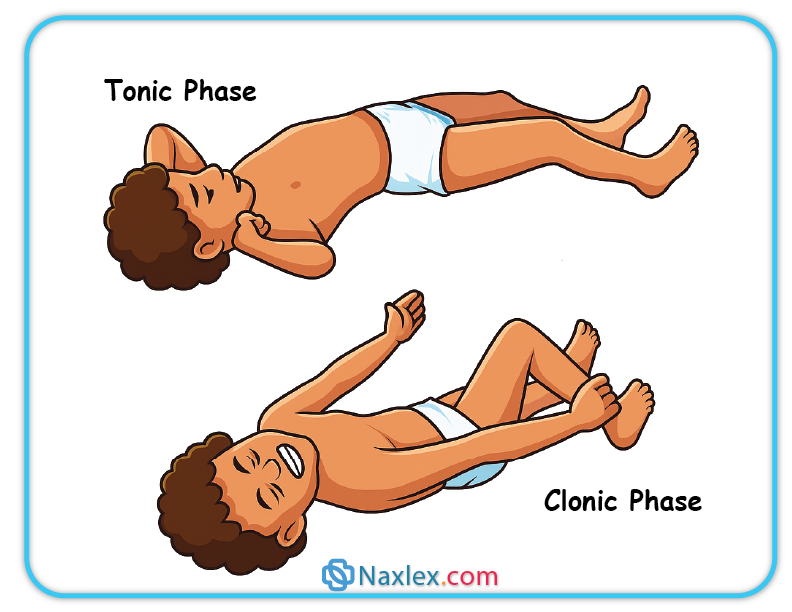 • Tonic-clonic seizures progress through tonic (stiffening) and clonic (jerking) phases.