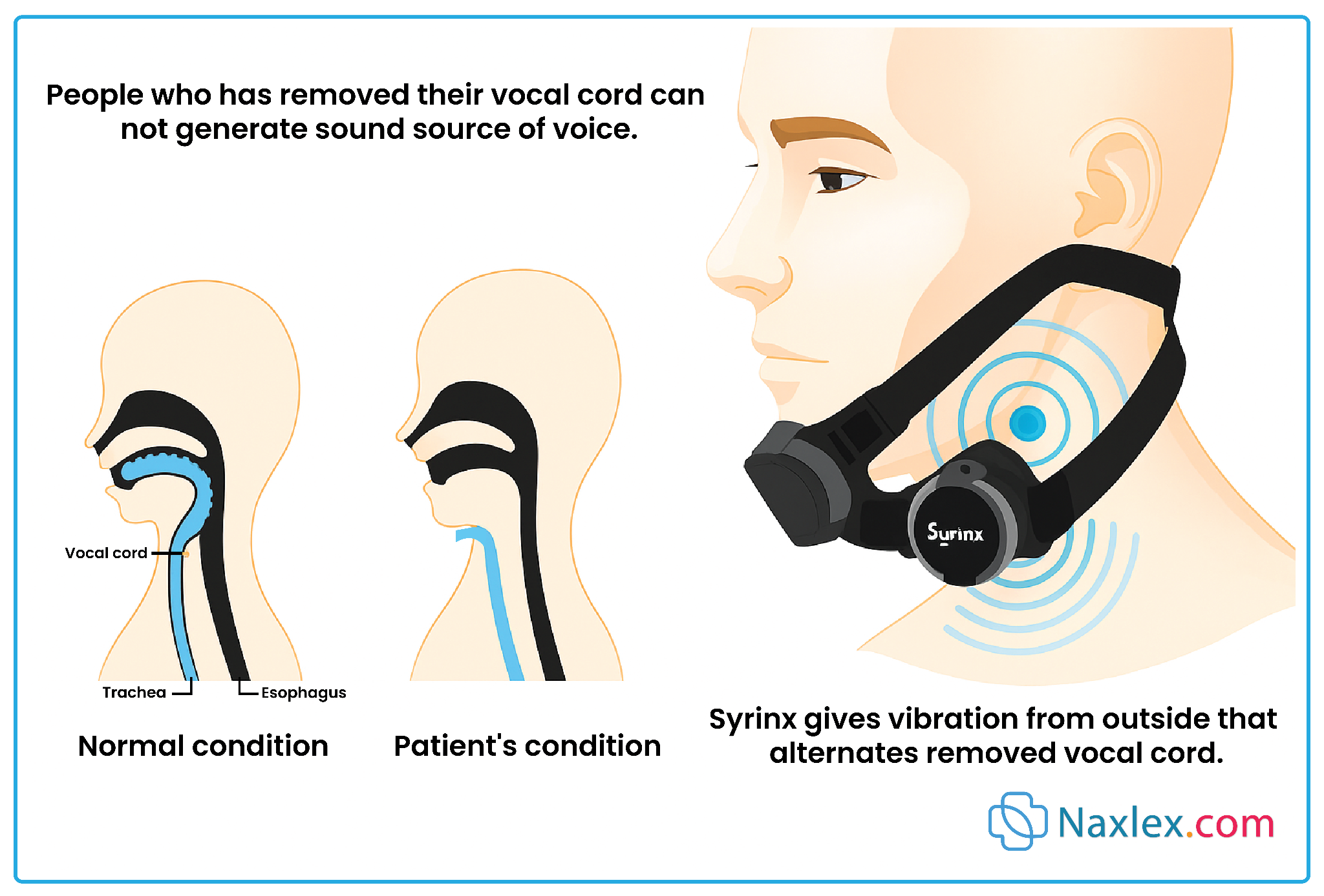 - Provide an artificial voice box (vibrator) for patient with a laryngectomy to use to speak.