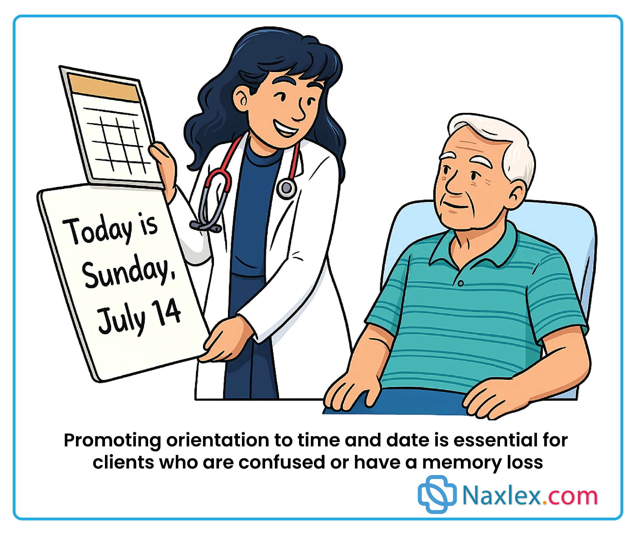 - Speak slowly and give patient time to understand; be calm and patient; do not pressure or tire the patient.