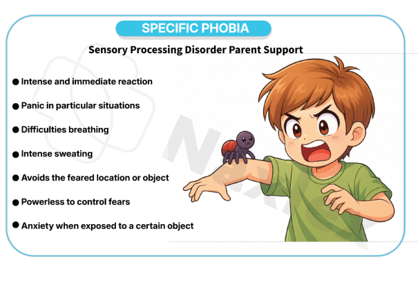 - Specific phobia involves persistent, irrational fear of a distinct object or situation.