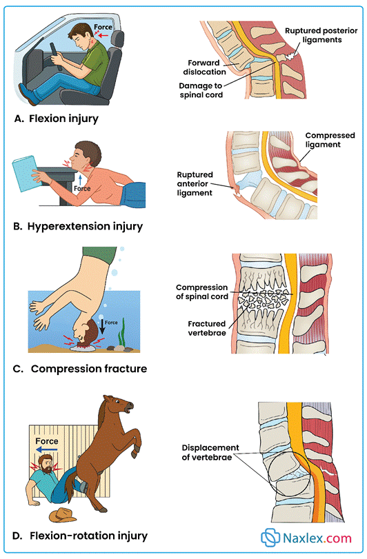 - Cervical (C1-C8): Most common and severe, often resulting in tetraplegia (paralysis of all four limbs). C1-C4 injuries are life-threatening due to the loss of respiratory muscle function.