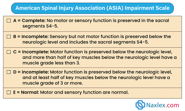 - Complete SCI: Total loss of all motor and sensory function below the level of injury.