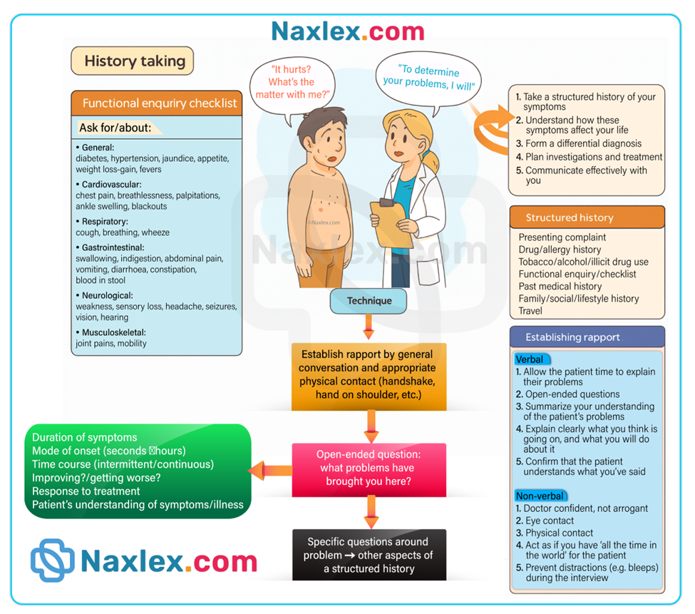 - Favor open-ended over yes/no questions for medication history.