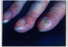 The nurse inspects the client's fingernails. Which differentiating characteristics are observed in this assessment finding?