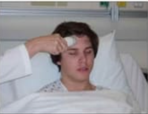 E. This option is incorrect because the nasal cannula does not contact the forehead. Pressure injuries or irritation in this area would be unrelated to nasal cannula use. Focusing on areas of direct contact (nostrils, bridge of the nose, ears, and cheeks) is essential for preventing device-related skin injury.