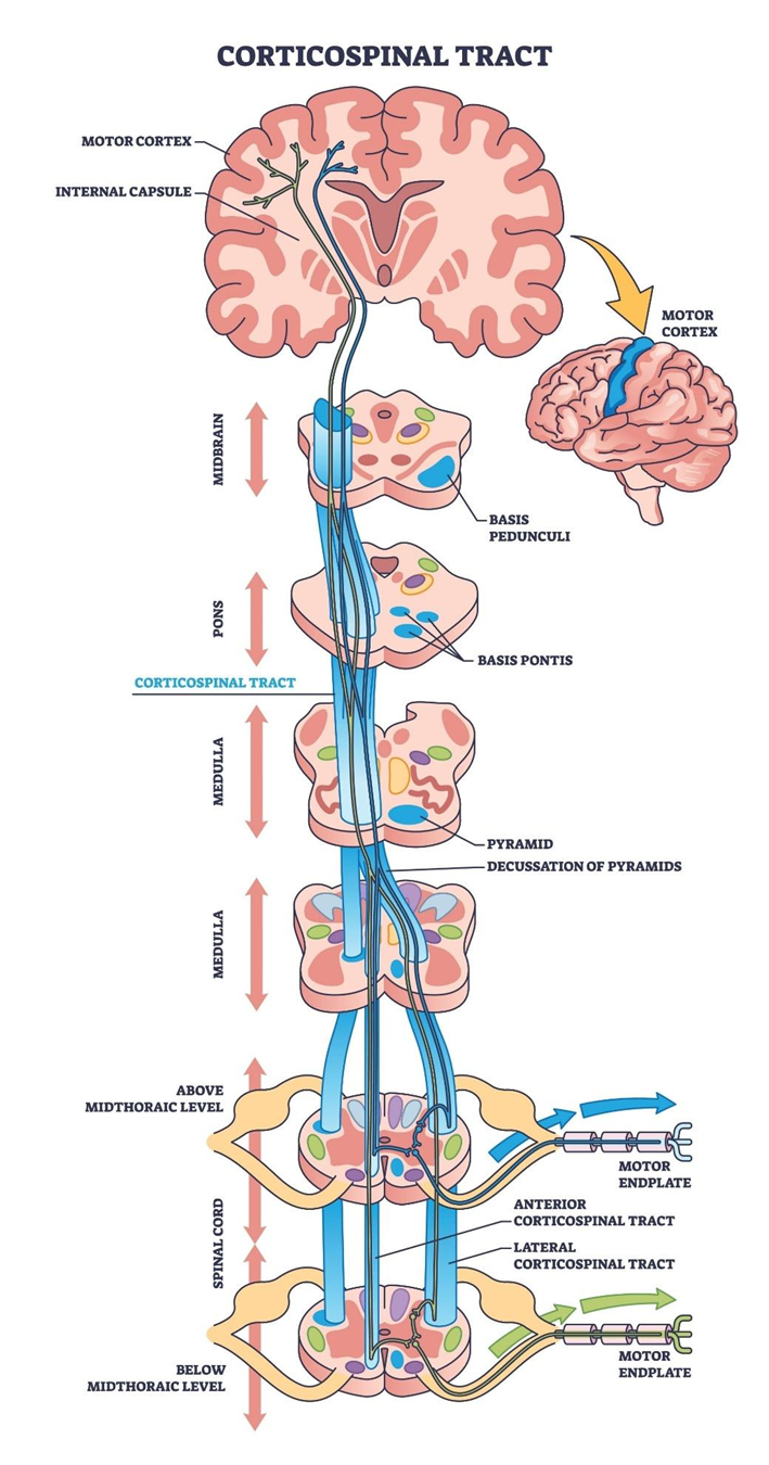 The patient exhibits unilateral weakness with inability to perform full ROM on one leg.