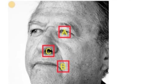 - Location A points to the eye area which is where conjunctival pallor (paleness) might be observed in anemia, but not cheilosis.
